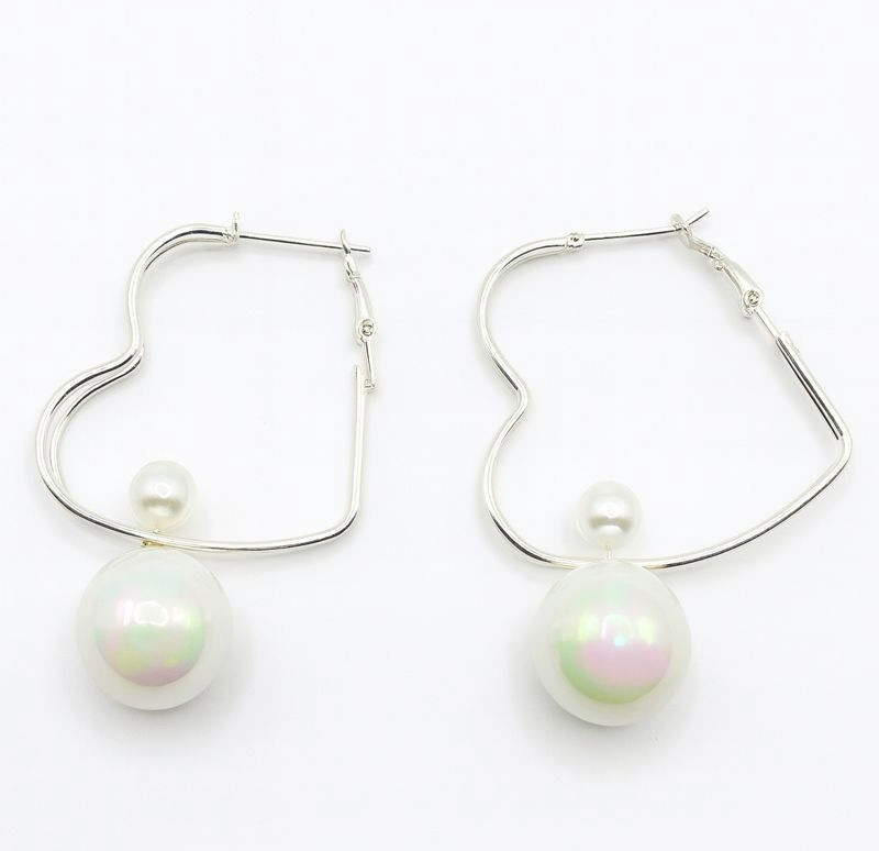 Crafted in a polished silver-tone finish, the heart-shaped design adds a romantic touch, while the smooth pearl detailing enhances its graceful appeal. Lightweight and comfortable, these earrings are ideal for all-day wear without compromising on style.