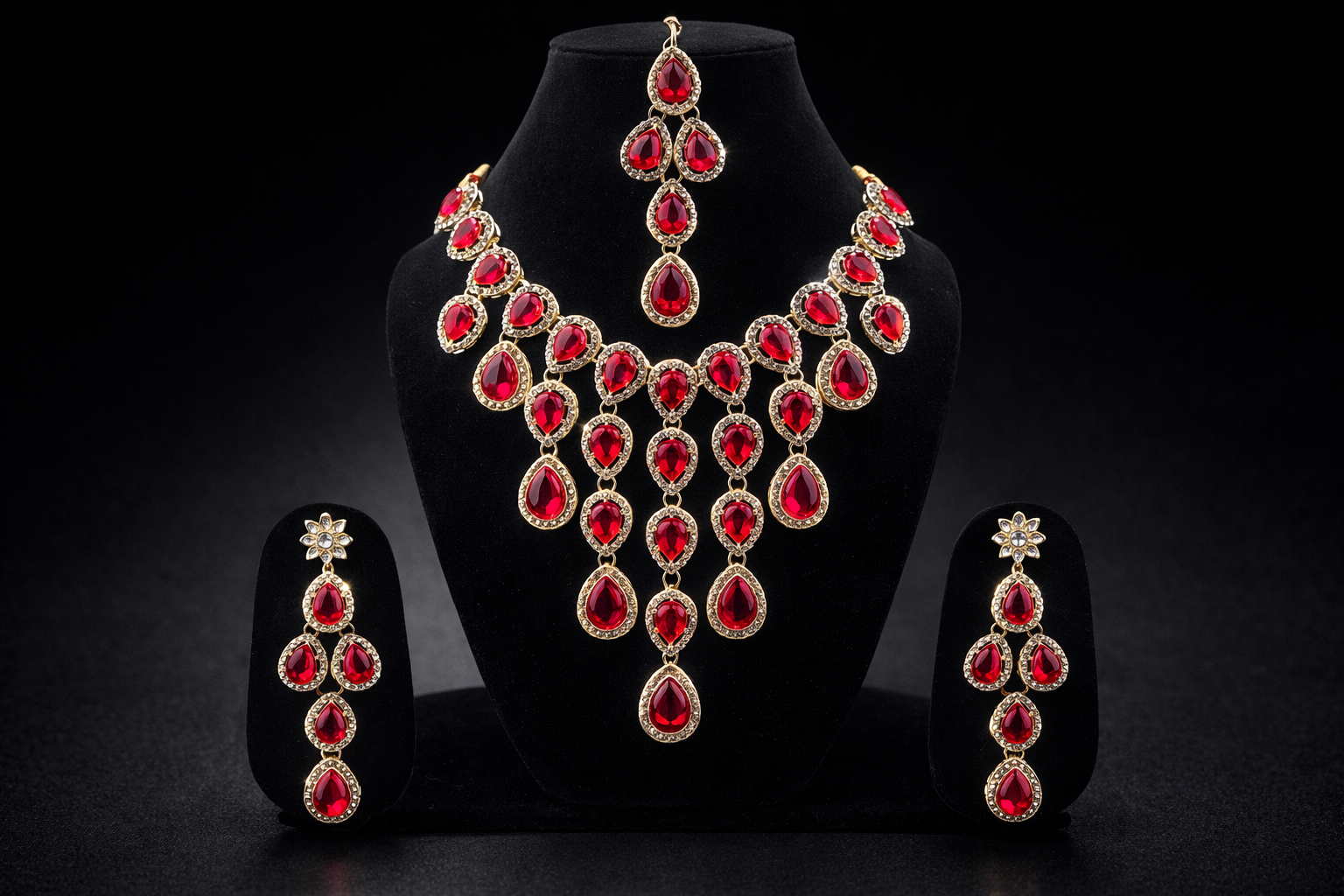 At CharmingAngle.com, we bring you trend-led, elegant jewellery designed to make you feel confident and radiant. This royal red crystal set is a perfect choice for brides, bridesmaids, or anyone looking to add luxurious sparkle to their occasion wear.